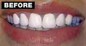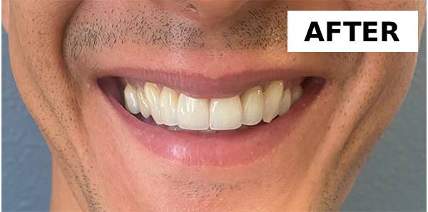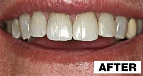 No more black lines at the gum line! Dr. Mobasseri and Dr. De Rosier replaced the metal-backed crowns with more natural looking, all porcelain crowns.