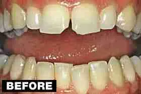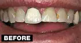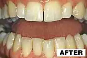 Teeth worn from grinding repaired with simple reshaping and cosmetic bonding–without anesthesia–in one visit.